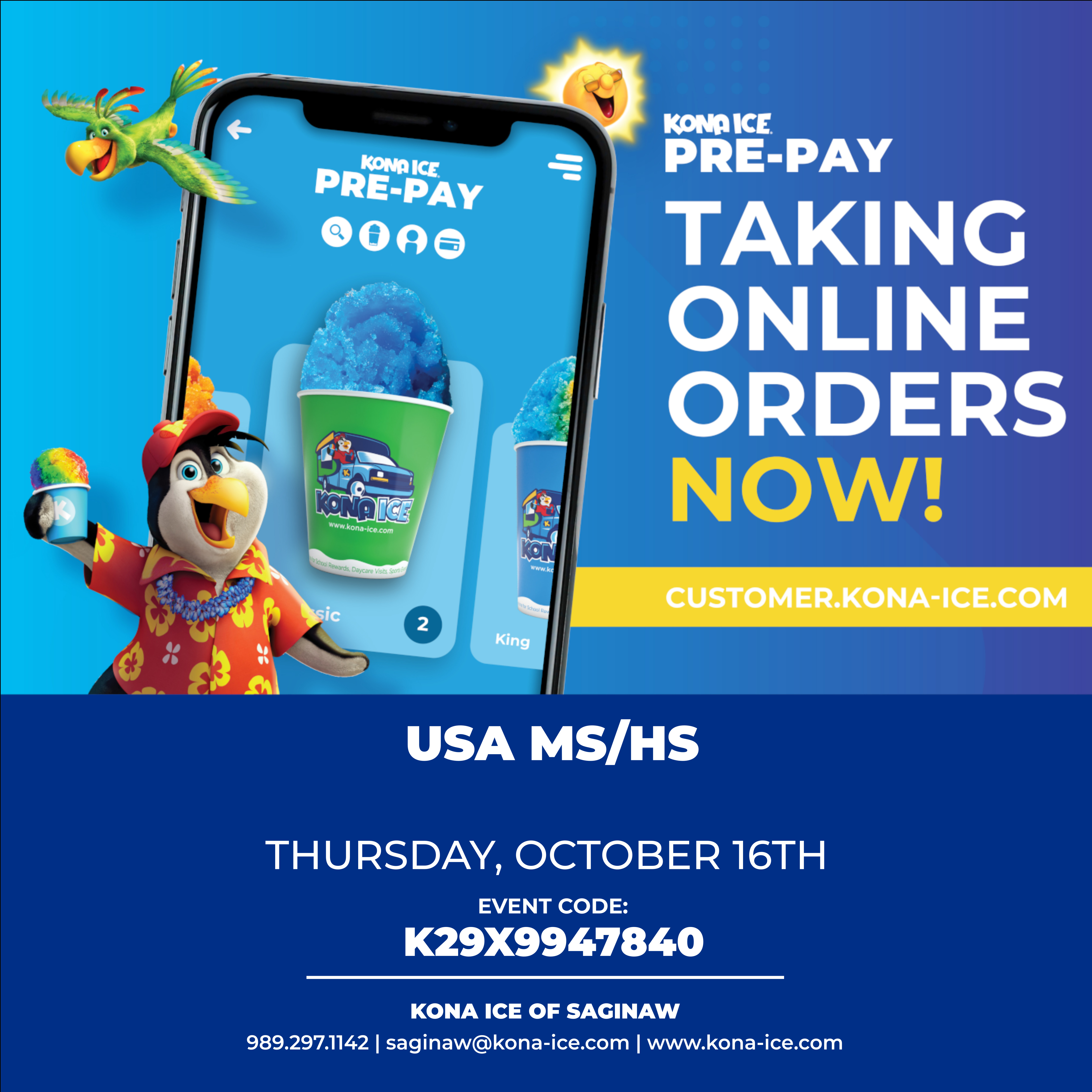 Our next Kona Ice date will be Thursday, October 16th. Click on the link to pre-order Kona Ice!